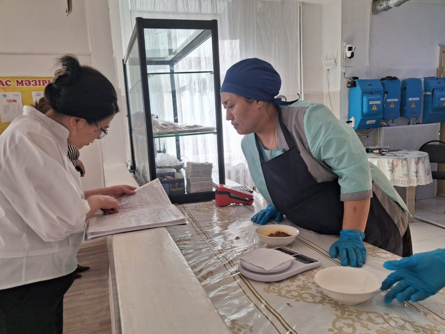 1. Тағамдар санитарлық нормаларға сай дайындалған, бақылау порциялары қойылған, өлшеу дұрыс орнатылған таразыларда жүргізілген. Екінші ауысымға арналған барлық тағам мен қамыр өнімдері белгіленген талаптарға сәйкес келеді.