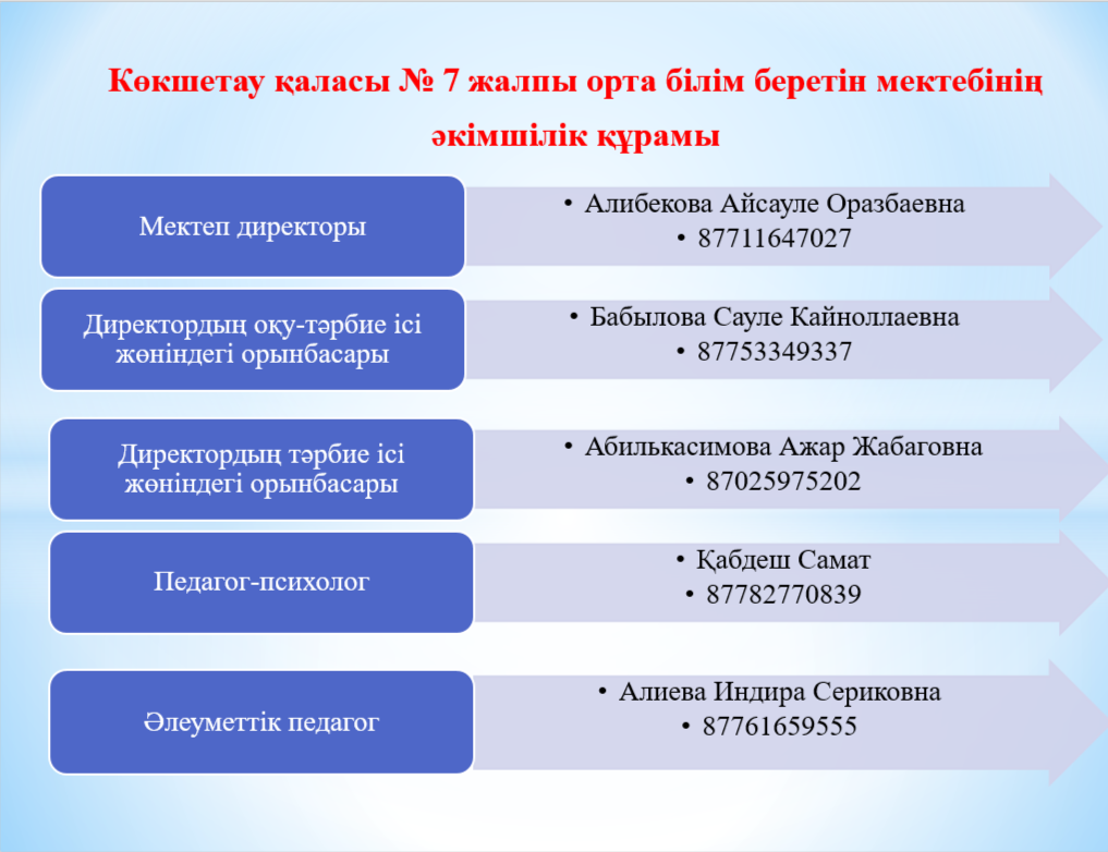 «Ақмола облысы білім басқармасының Көкшетау қаласы бойынша білім бөлімі Көкшетау қаласының № 7 жалпы орта білім беретін мектебі» коммуналдық мемлекеттік мекемесі.